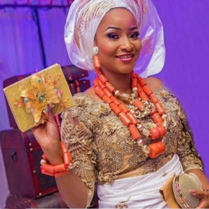 Product Name: 4 Ujewelry Halsband Schmuck-Set Original Korallen Perlen Halskette Schmuck 3 Schichten Frauen Große Edo Braut Schmuck Set Freies Verschiffen Neue