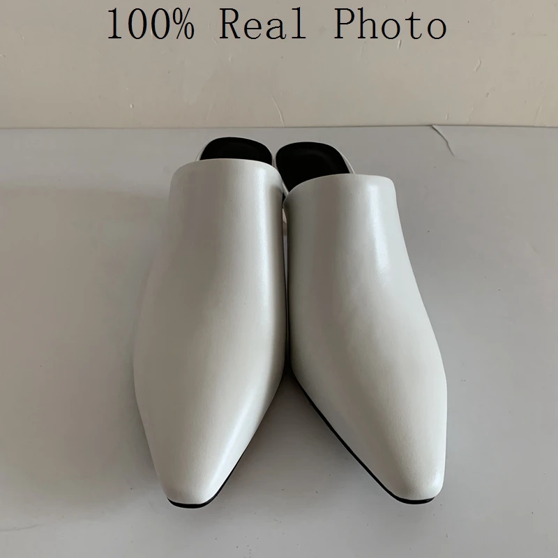 Special Offer REAVE KATZE Frauen Hausschuhe Echtem Leder Frau Maultiere Spitz Runde Klar Heels Neue Rutschen Partei Schuhe Große Größe 43 A1678 Discount (45%OFF) Today!