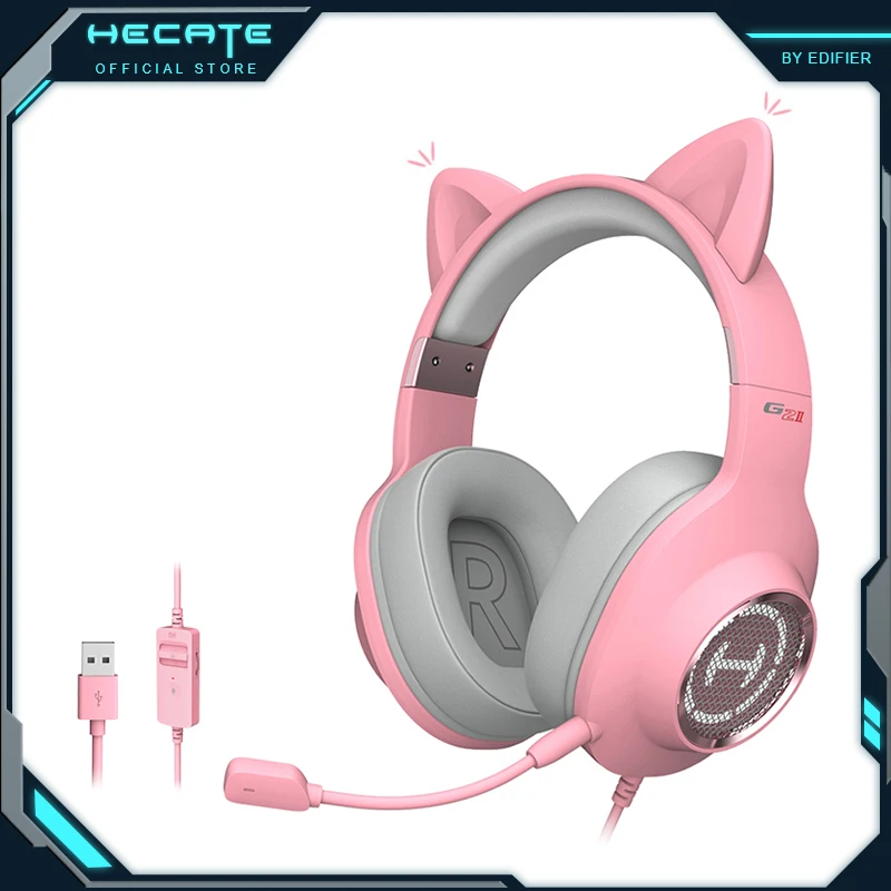 Special Offer HECATE G2II Rosa Gaming Headset Katze Ohr Kopfhörer 7,1 Virtuelle Surround Sound Durch EDIFIER,RGB Licht, Elektret-mikrofon, Für Mädchen Discount (50%OFF) Today!