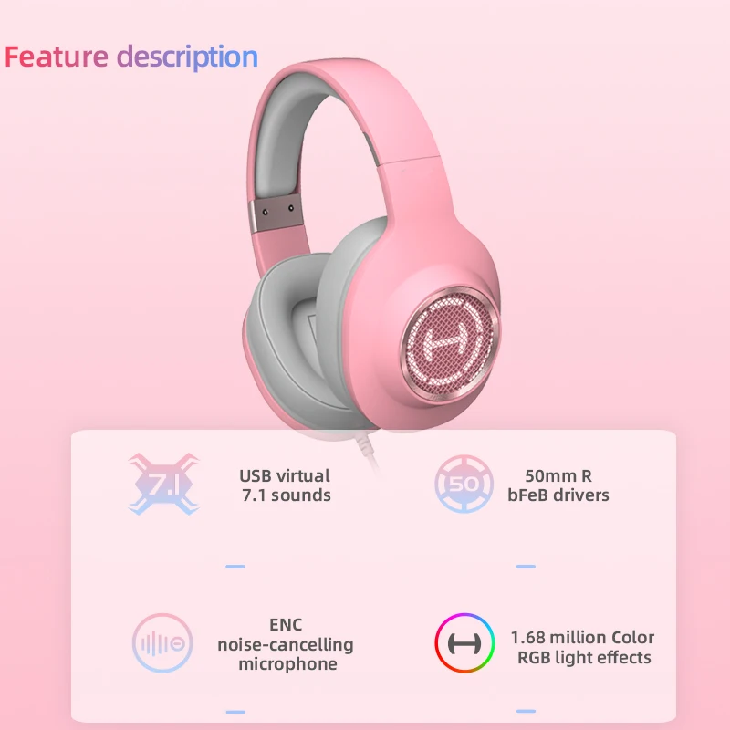 Product Name: HECATE G2II Rosa Gaming Headset Katze Ohr Kopfhörer 7,1 Virtuelle Surround Sound Durch EDIFIER,RGB Licht, Elektret-mikrofon, Für Mädchen