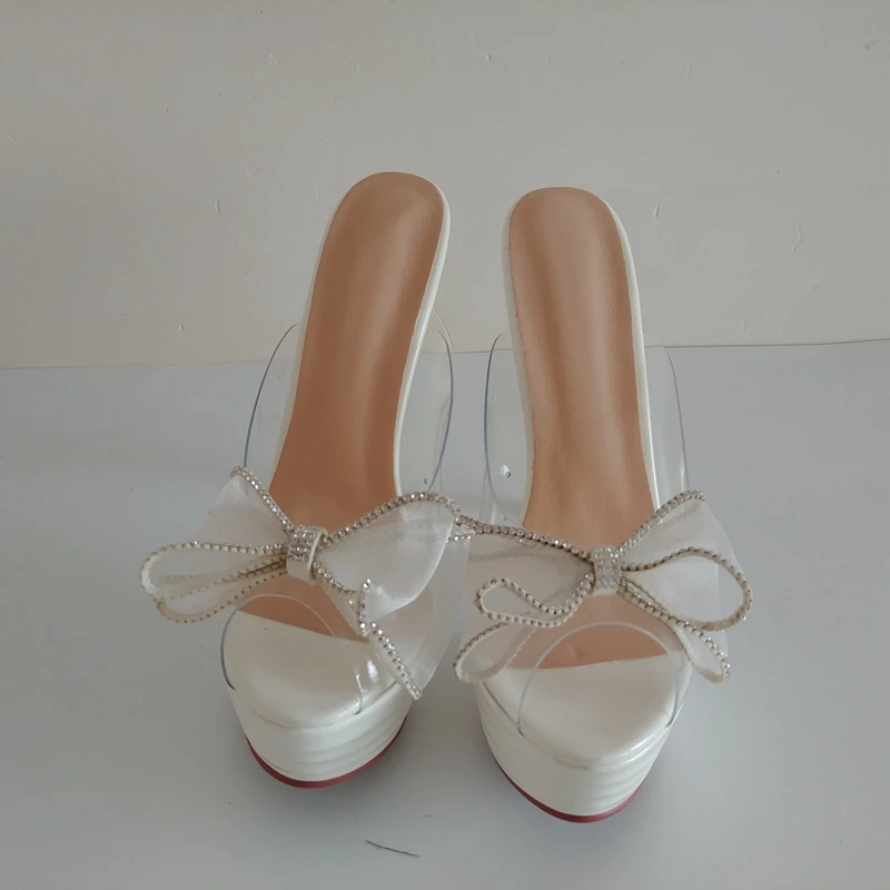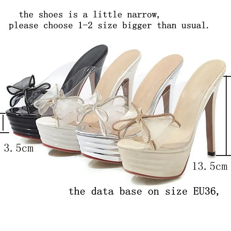 Product Name: REAVE KATZE Frau Sexy Klar Hausschuhe Bögen Frauen Plattform Partei Sandalen Ultra High Heels Maultiere Transparent Zapato Mujer Größe 43