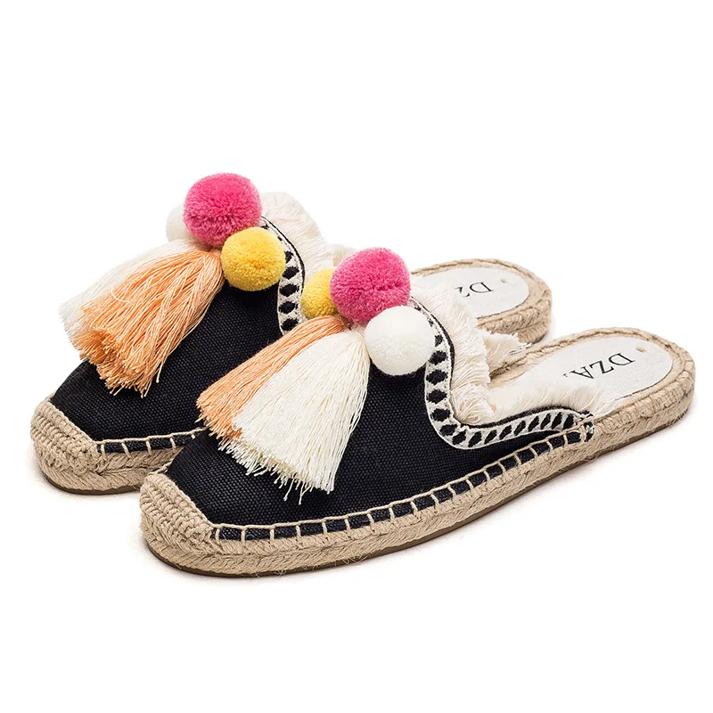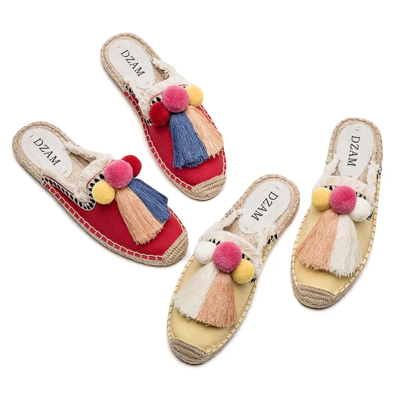 Product Name: Reave Katze 2021 Quaste Hohe Quatliy Bestickt Espadrilles Hausschuhe Frauen Fransen Hausschuhe Casual Faul Pompoms Leinen Flache Schuhe