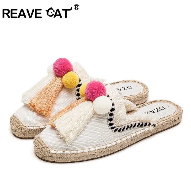 Special Offer Reave Katze 2021 Quaste Hohe Quatliy Bestickt Espadrilles Hausschuhe Frauen Fransen Hausschuhe Casual Faul Pompoms Leinen Flache Schuhe Discount [NEW!!] Today!