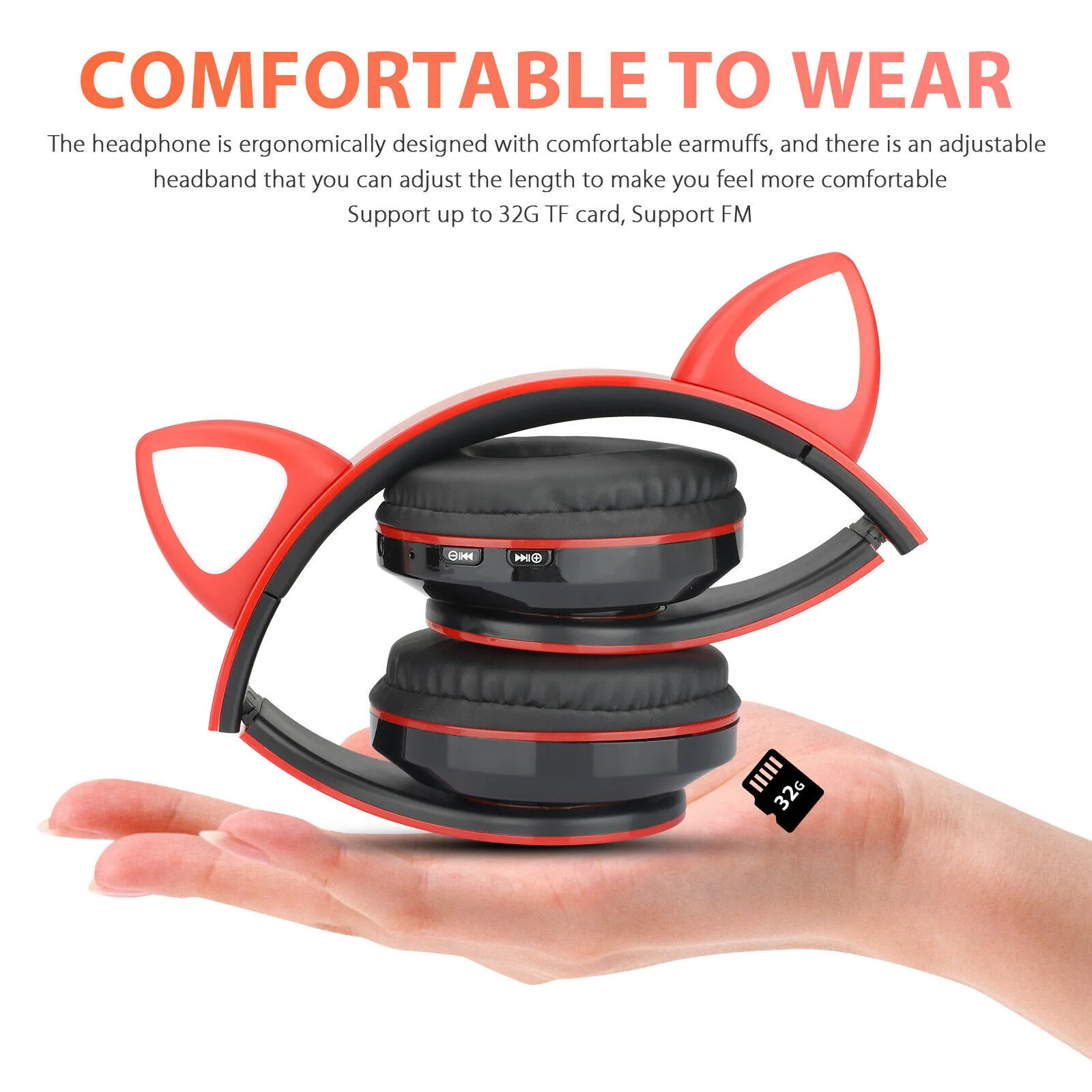 Special Offer CARPRIE Kopfhörer Drahtlose Kopfhörer LED Katze Ohr Bluetooth Kopfhörer V 5,0 Jungen Menschen Kinder Gaming Headsets Mit Mic Discount (80%OFF) Today!