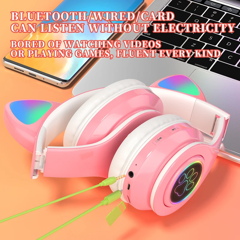 Special Offer Katze Ohr Bluetooth Leuchtenden Kopfhörer Gaming Noise Cancelling Wireless Headset Faltbare Hifi Tiefe Bass Musik Kopfhörer Mit Mic Discount (40%OFF) Today!
