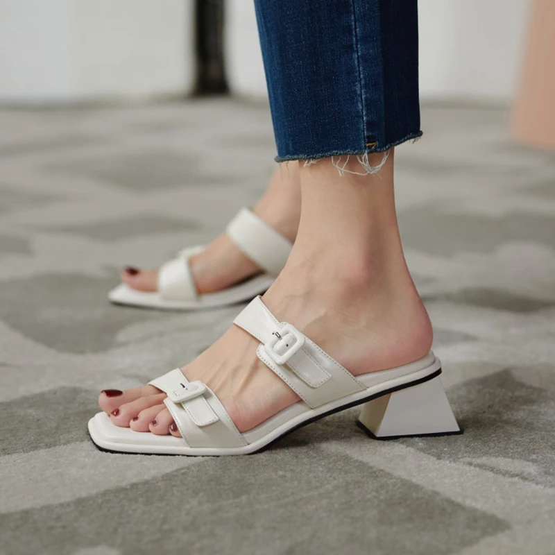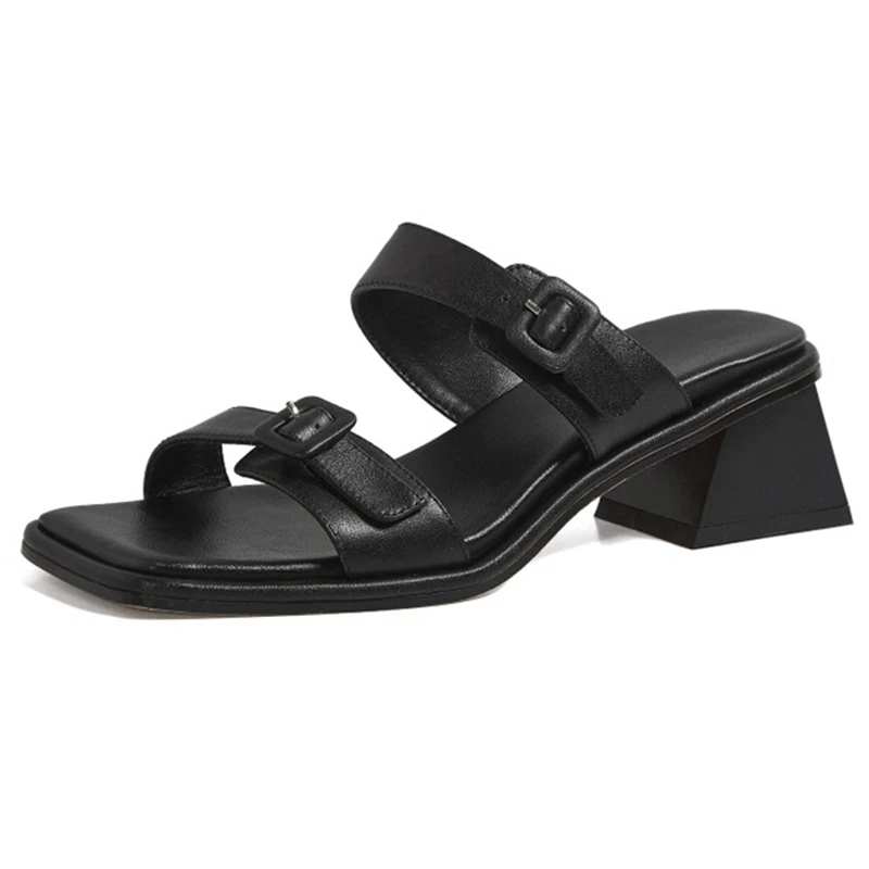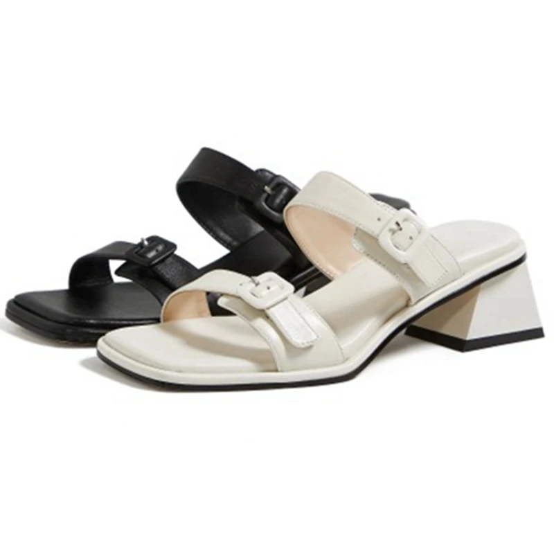 Special Offer REAVE KATZE 2021 Neue Echtem Leder Hausschuhe Pumps Gürtel Schnalle Schmale Band Slip Auf 4,5 Cm Seltsame Ferse US8 Schwarz Weiß A4295 Discount [NEW!!] Today!