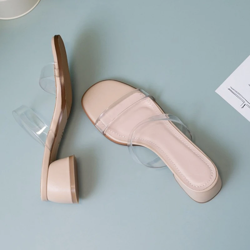 Product Name: REAVE KATZE Sommer Frauen Schuhe Frau Hausschuhe 5cm Hoof Med Heels Slingback Plattform Transparent Damen Hochzeit Maultiere