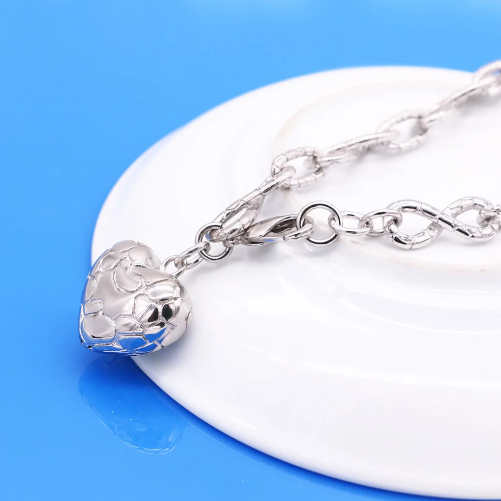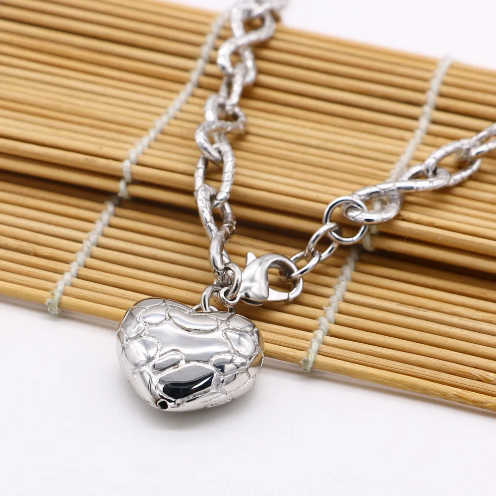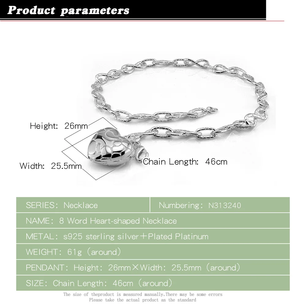 Product Name: Mode-Design Echtes 100% 925 Sterling Silber Herz Anhänger Halskette Für Frauen 18 Zoll Figaro Kette Feine Schmuck Geschenk