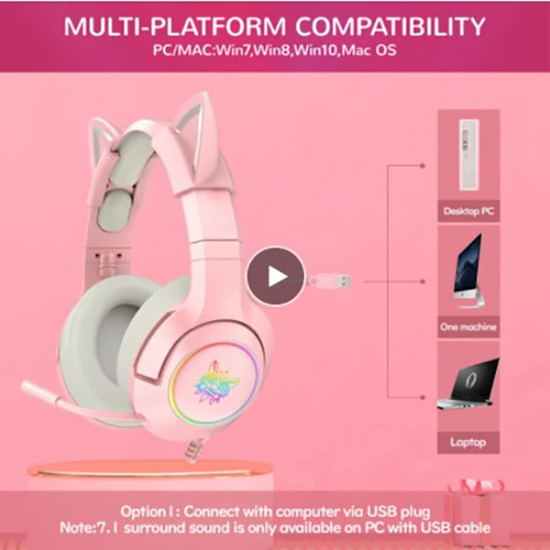 Product Name: Silikon Rosa Verdrahtete Spiel Katze Ohr Headset Mit Mikrofon Hifi 7,1 Kanal Gaming Musik Headset Schrittweise Streamer Atmosphäre Lampe