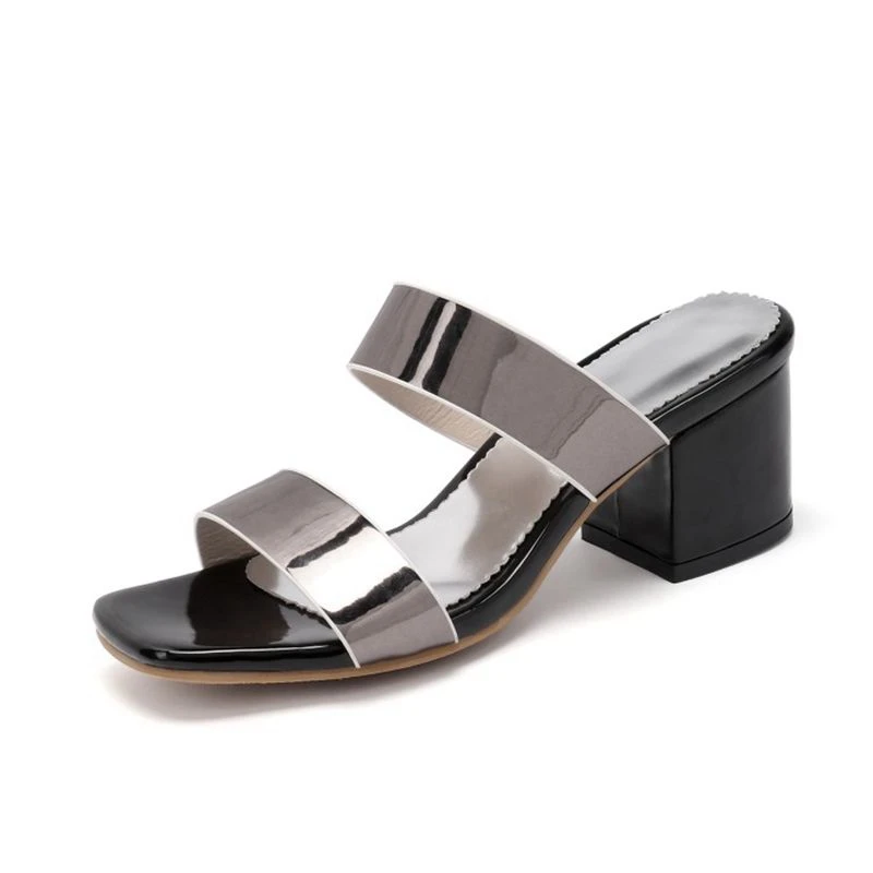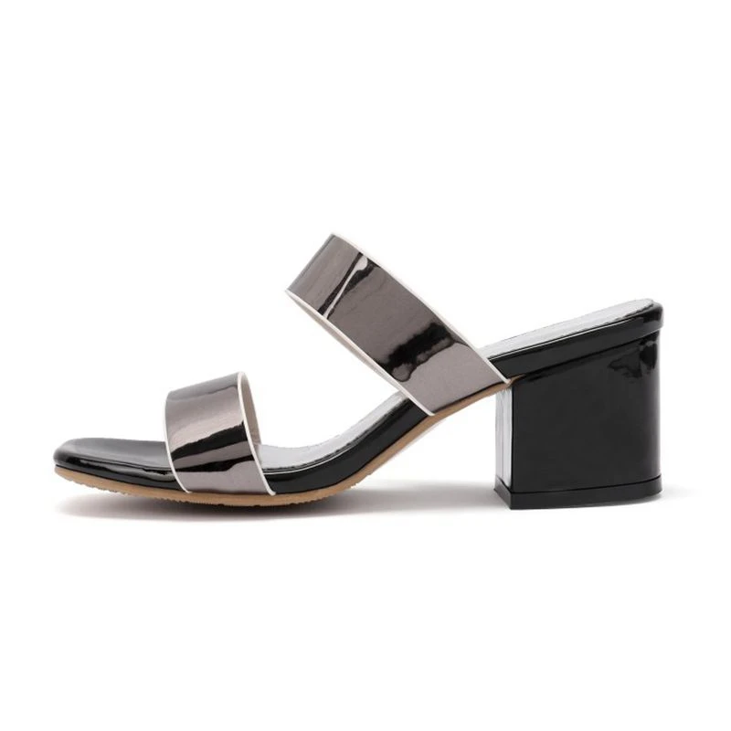 Product Name: REAVE KATZE Große Größe 33-46 Frauen Hausschuhe Sexy Karree High Heels Maultiere Neue Rutschen Party Casual Schuhe Frau Patent Leder