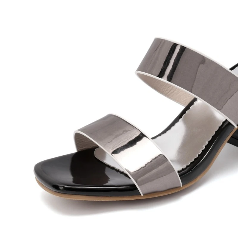 Special Offer REAVE KATZE Große Größe 33-46 Frauen Hausschuhe Sexy Karree High Heels Maultiere Neue Rutschen Party Casual Schuhe Frau Patent Leder Discount (45%OFF) Today!