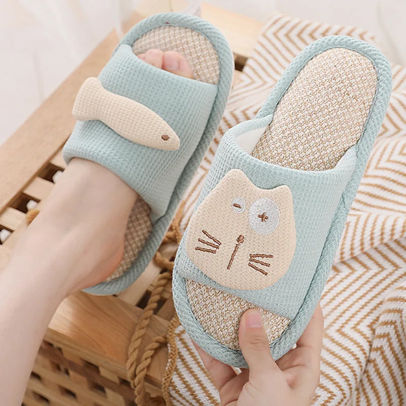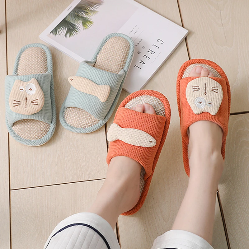 Special Offer Innen Schlafzimmer Paare Casual Hausschuhe Nette Katze Fisch Cartoon Damen Lustige Rutschen Atmungsaktive Neue Frauen Hanf Hausschuhe Nicht-slip Discount (49%OFF) Today!