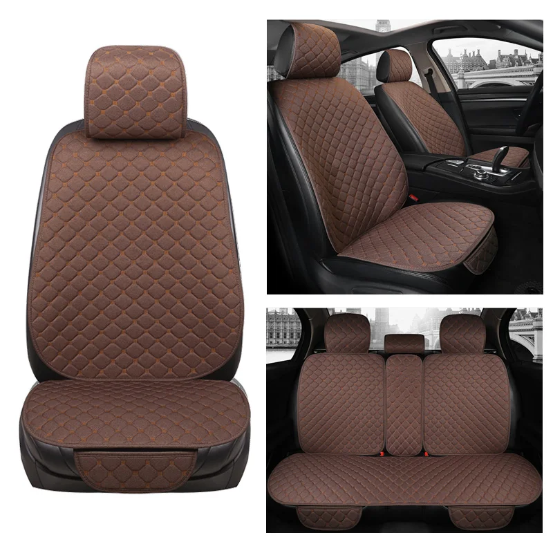 Special Offer 5 Sitze Flachs Auto Sitz Abdeckung Atmungs Auto Sitzkissen Protector Vorderseite Rückseite Back Pad Matte Mit Rückenlehne Fit Mehr Auto Suv Van Discount (28%OFF) Today!