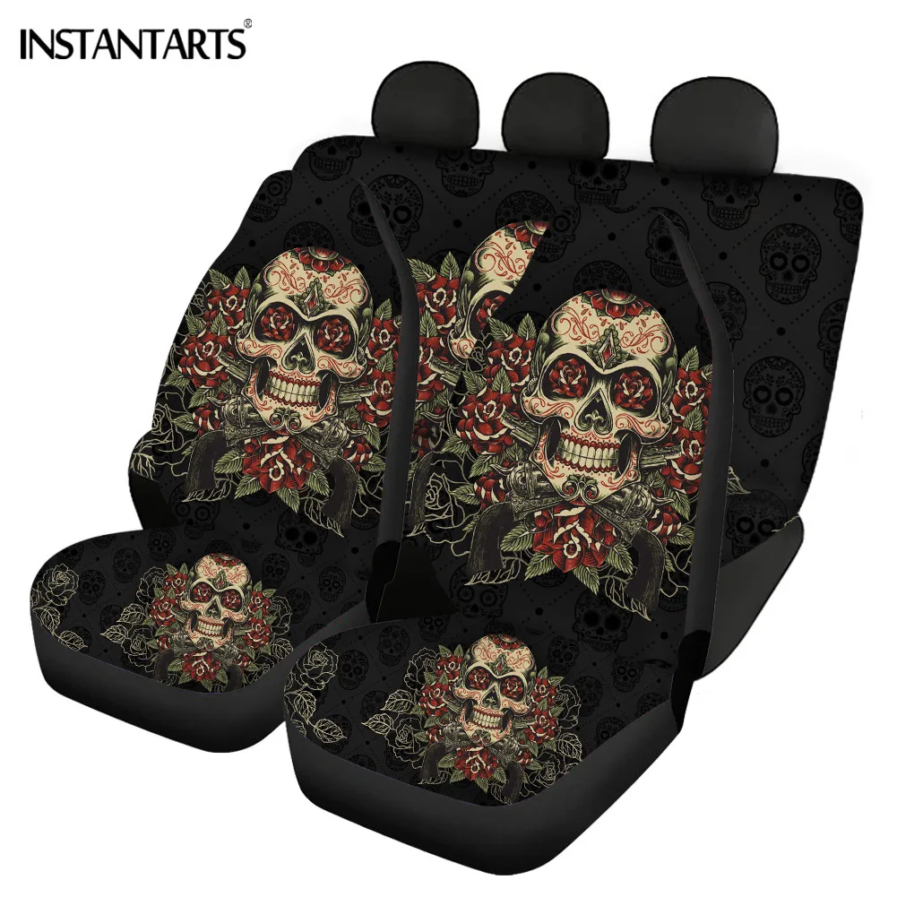 Special Offer INSTANTARTS Gothic Schädel Muster Universal-Automobile Auto Vorderseite Rückseite Sitz Covers Schutz Matte Weiche Anti-slip Für Die Meisten Auto Autos Discount (29%OFF) Today!
