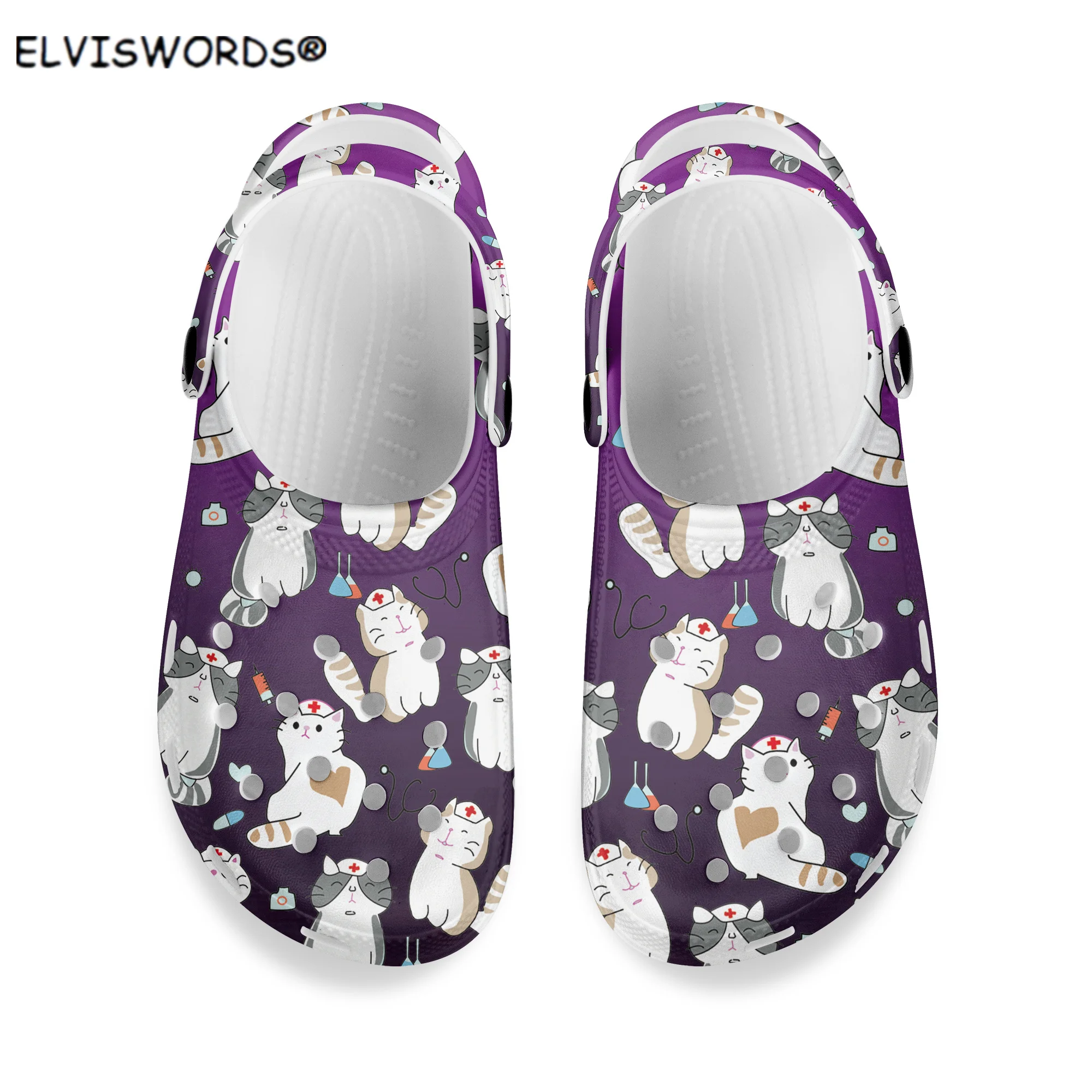 Special Offer ELVISWORDS Cartoon Krankenschwester Katze Design Frau Loch Garten Schuhe Atmungsaktive Damen Sandalen Hausschuhe Flache Heels Frauen Faul Loch Schuhe Discount (49%OFF) Today!