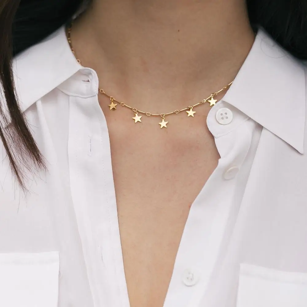 Product Name: Gold Gefüllt Sterne Halskette Handgemachten Schmuck Boho Choker Anhänger Minimalismus Collier Femme Kolye Collares Frauen Halskette