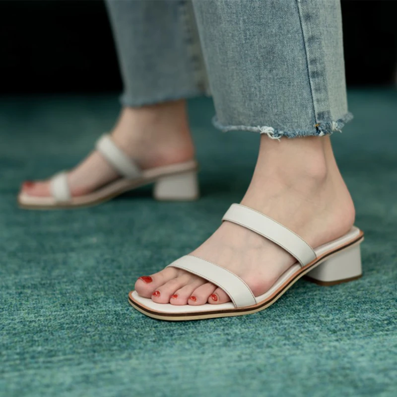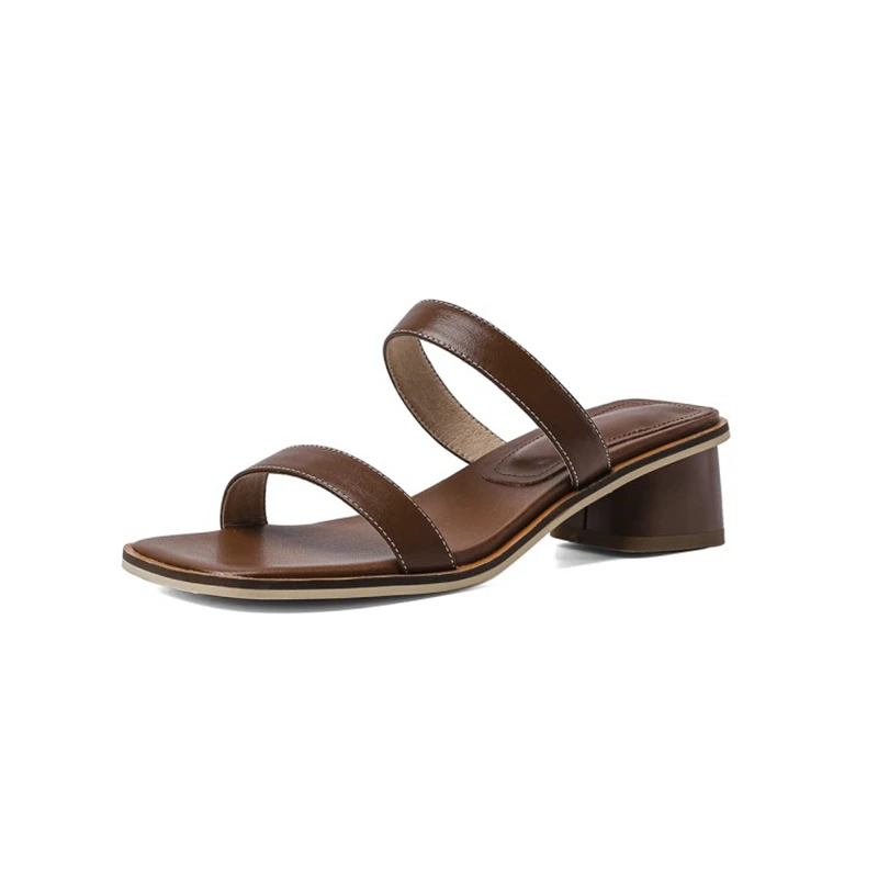 Product Name: REAVE KATZE 2021 Mode Concise Hausschuhe Schmale Band Solide Offene Spitze Slip Auf 4cm Chunky Ferse Schuhe Größe 34-40 Braun Beige A4263