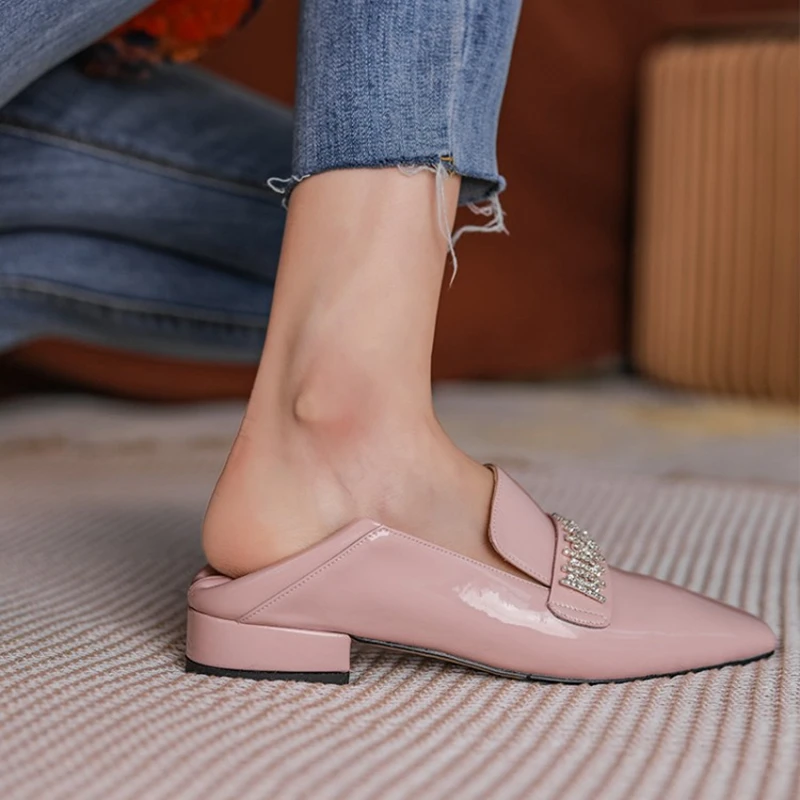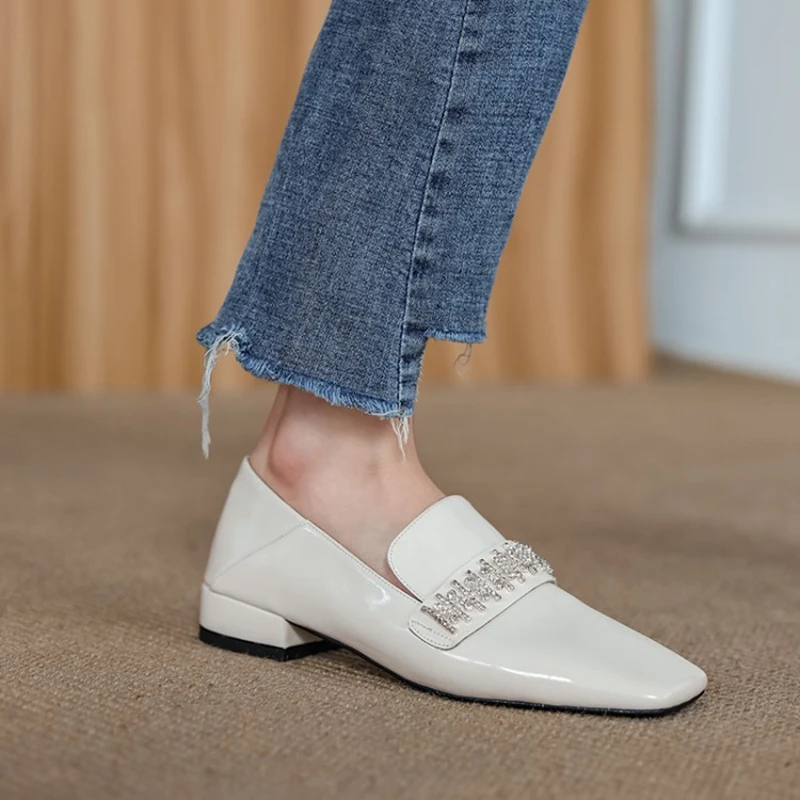 Special Offer REAVE KATZE 2021 Damen Wohnungen Lofers Patent Leder Slip Auf Kristall Karree 2CM Quadratische Starke Block Ferse Pantoffel Büro S2185 Discount (45%OFF) Today!