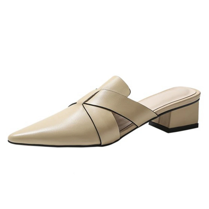 Special Offer REAVE KATZE 2021 Hausschuhe Halb Ferse Schuhe Maultiere Patchwork Spitz Pumps 3,5 Cm Chunky Ferse US9 Grün Beige Apricot A4326 Discount (45%OFF) Today!
