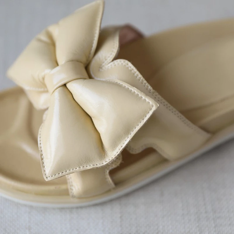 Special Offer REAVE KATZE 2021 Komfort Plus Nette Damen Hausschuhe Bowtie Echtes Leder Open Toe Pumps 2,5 Cm Größe 34-40 Weiß Gelb A4218 Discount (45%OFF) Today!