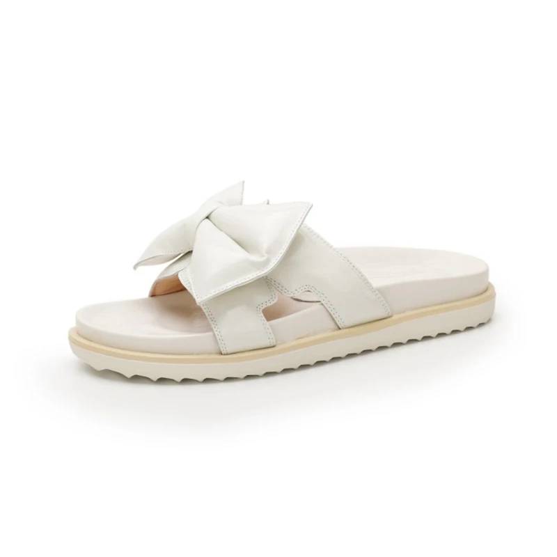 Product Name: REAVE KATZE 2021 Komfort Plus Nette Damen Hausschuhe Bowtie Echtes Leder Open Toe Pumps 2,5 Cm Größe 34-40 Weiß Gelb A4218
