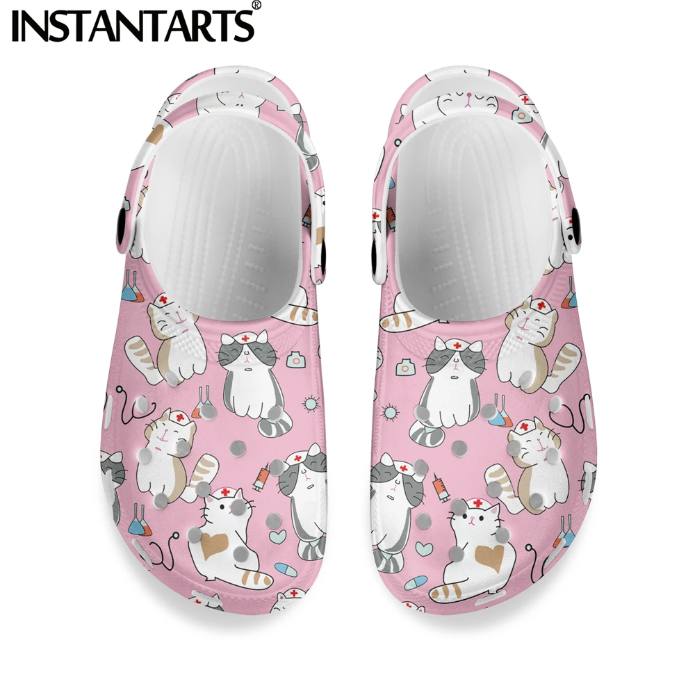 Product Name: INSTANTARTS Heißer Verkauf Frauen Sommer Loch Schuhe Nette Medizinische Katzen Cartoon Muster Gleitet Sandalen Für Damen Weichen Strand Flache 2021