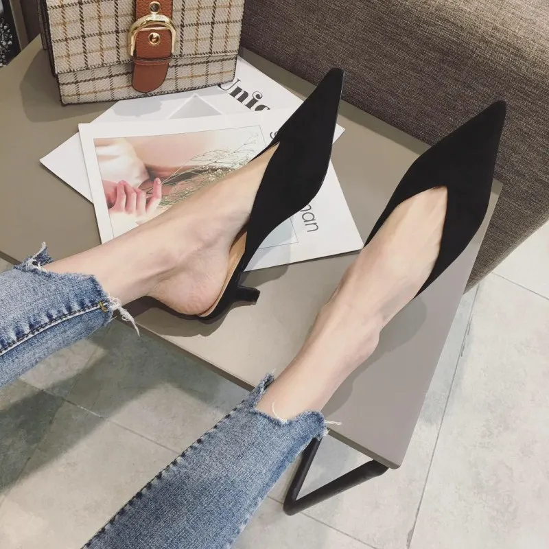 Product Name: 2021 Neue Spitze Sexy V Katze Und Muller Schuhe Koreanische Version Von Flach Baotou Hälfte Hausschuhe