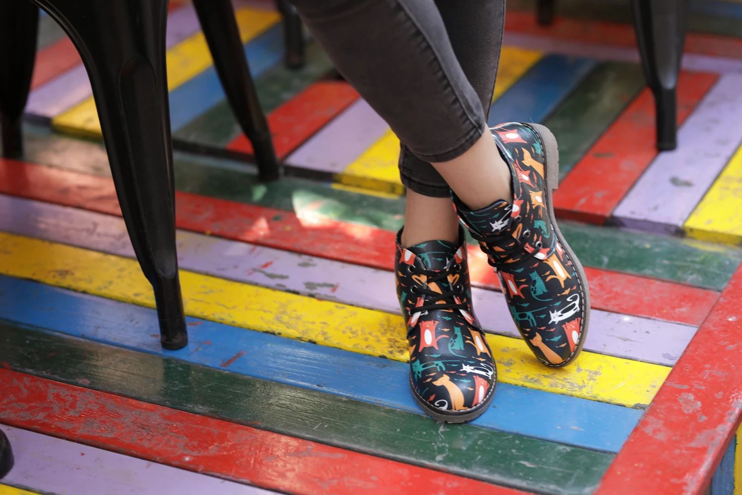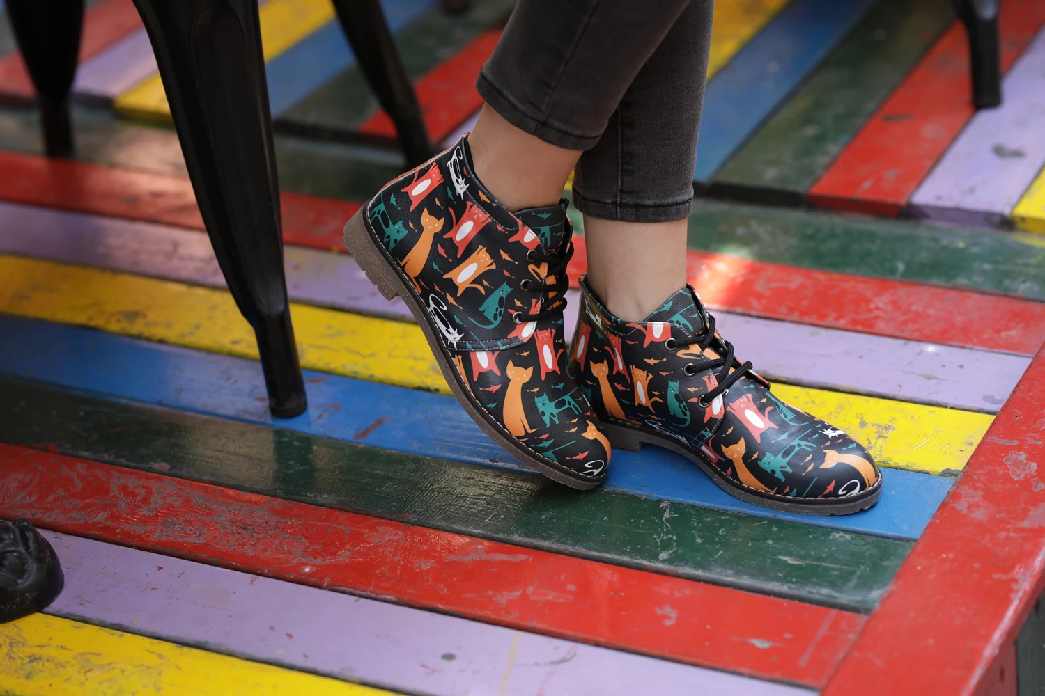 Product Name: Digitale Ausgabe Katzen Gedruckt Muster Spezielle Design Frauen Kurze Stiefel Ankle Boot Bequeme Schuhe Casual Dame