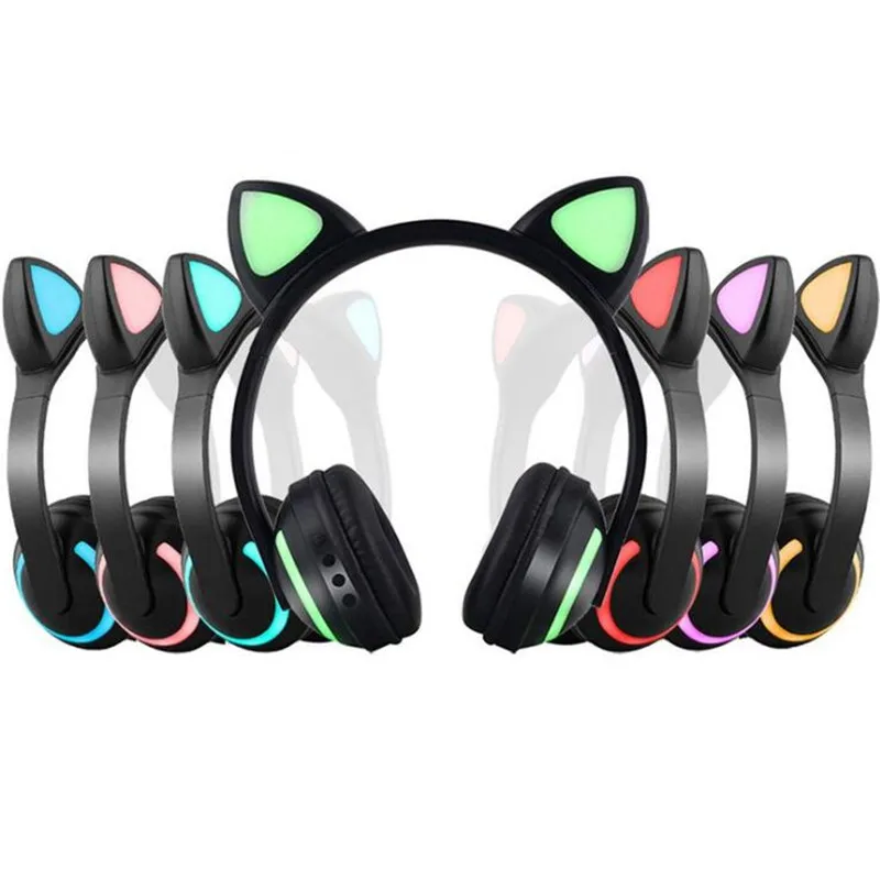 Product Name: Glowing Katze Ohr Bluetooth Drahtlose Kopfhörer Mit Mic Nette Kinder LED Stereo Gamer Headsets Telefon Gaming Helm Für Kinder Geschenk