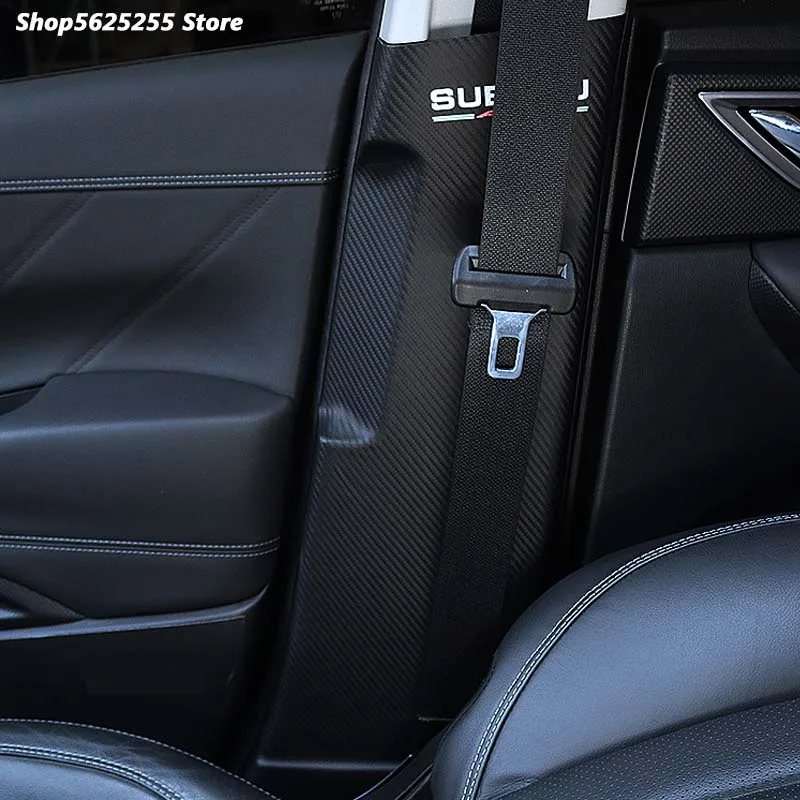 Product Name: Sitz Gürtel Protector Pad Carbon Faser Leder Streifen Für Subaru Forester 2019 2020 2021 Zubehör Auto B Säule Anti-kick Matte