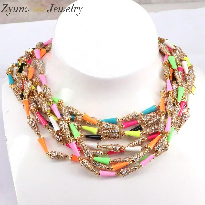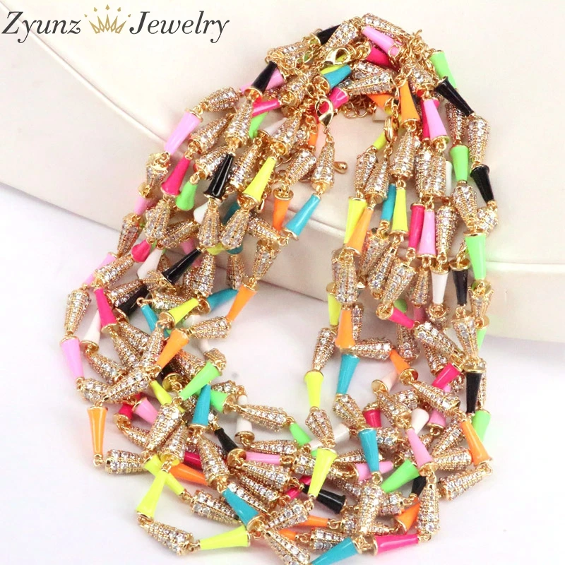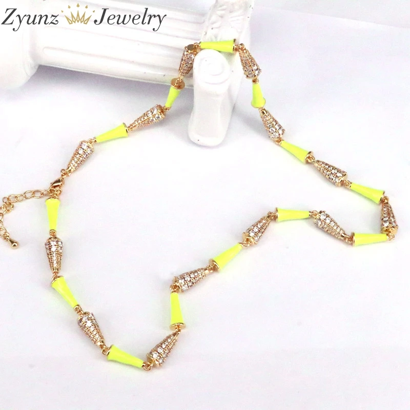Product Name: 3PCS, Bunte Emaille Kette Gold CZ Charme Halskette, Halsband Schichtung Halskette Boho Schmuck