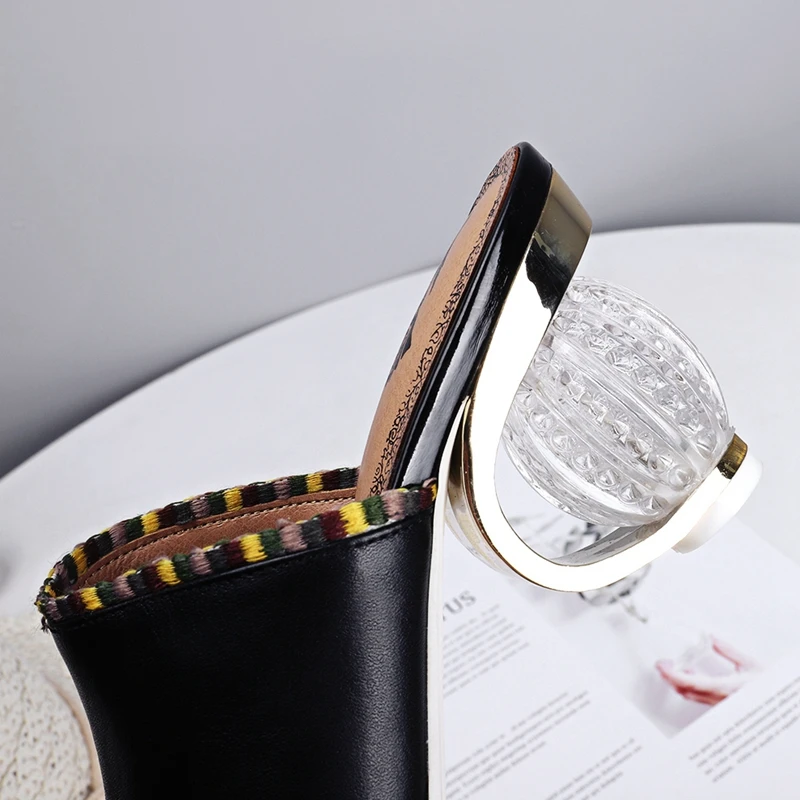 Product Name: REAVE KATZE Frauen Echtes Leder Schuhe Damen Slipper Hohe Qualität Rutschen Slip Auf Peep Toe Nieten Abnorme Heels Sommer Heißer A1972