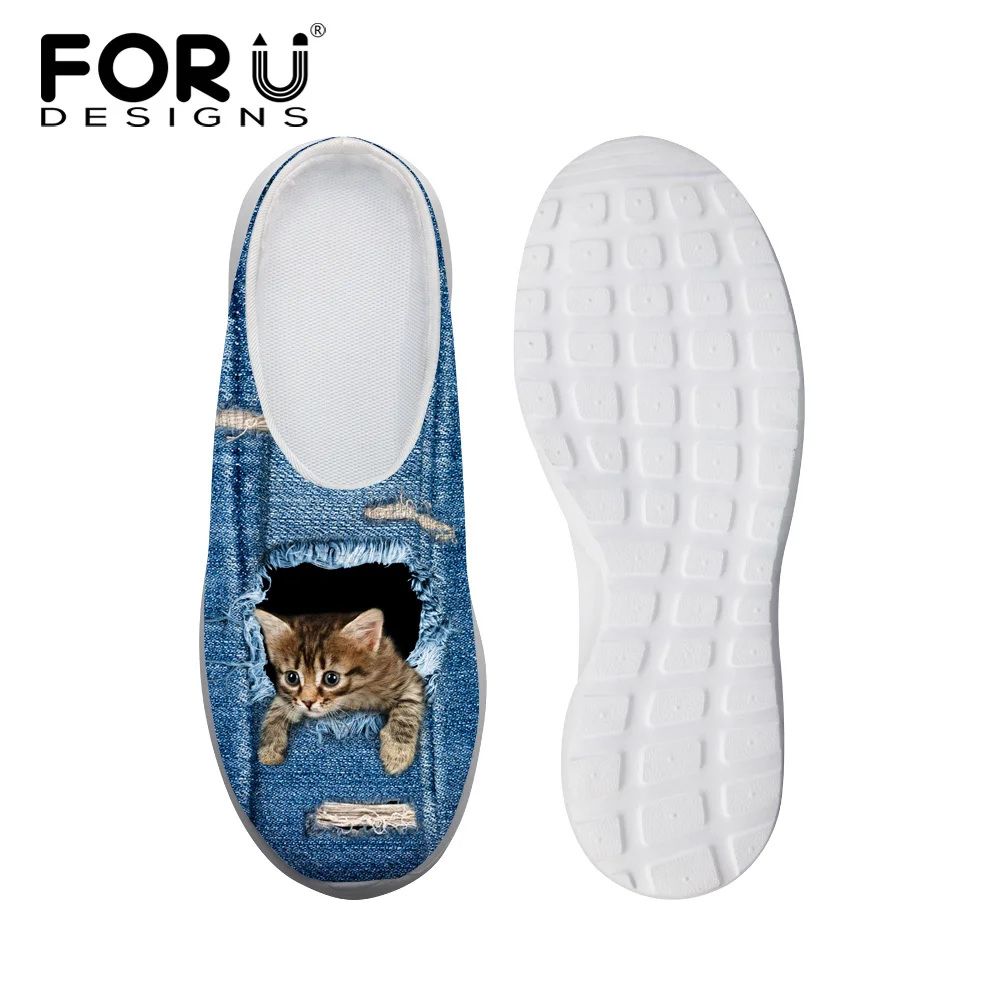 Special Offer FORUDESIGNS Klassische Denim Katze Gedruckt Hausschuhe Frau Sommer Strand Atmungsaktive Mesh Sandalen Für Damen Wohnungen Casual Hausschuhe Frauen Discount (49%OFF) Today!