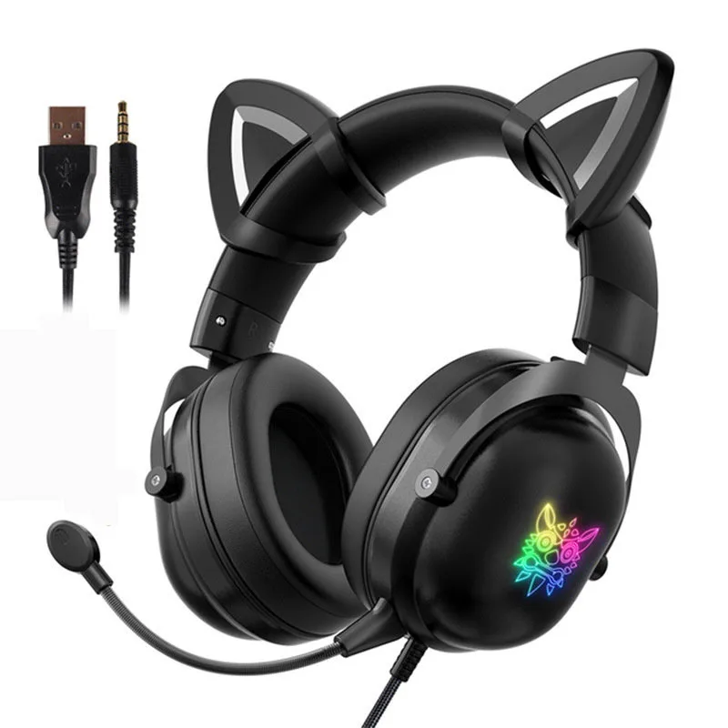 Product Name: Neue Ankunft Nette Mädchen Rosa Katze Ohr Headset Mit Mikrofon Noise Reduktion RGB Wired Gaming Headset Für Computer Xbox One