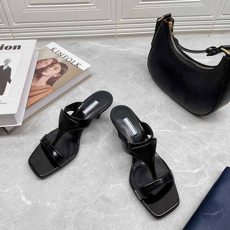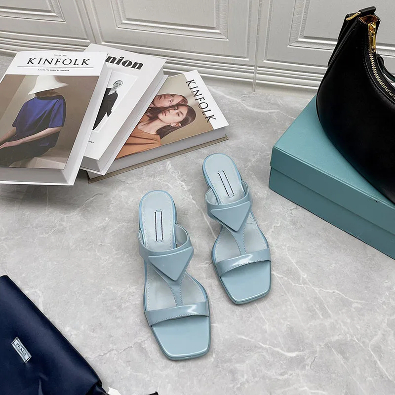 Special Offer Karree Frauen Sandalen Hohe-qualität Katze-auge High Heels Sommer Komfortable Rutschen Atmungsaktive Sexy Leder Hausschuhe Neue 2021 Discount (45%OFF) Today!