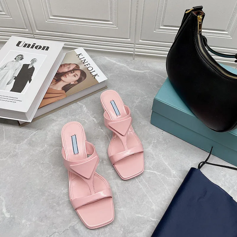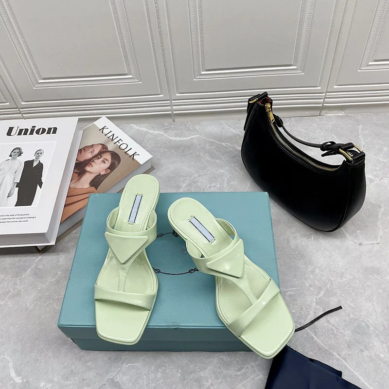 Product Name: Karree Frauen Sandalen Hohe-qualität Katze-auge High Heels Sommer Komfortable Rutschen Atmungsaktive Sexy Leder Hausschuhe Neue 2021