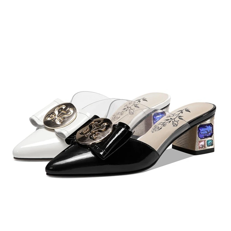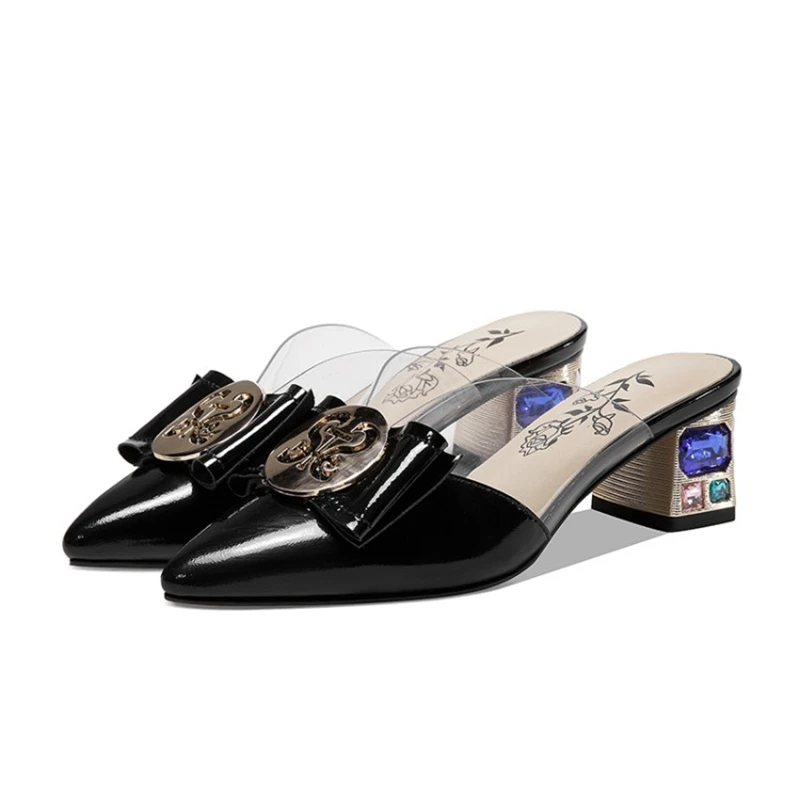 Special Offer REAVE KATZE 2021 Echtem Leder Strass Shiny Damen Hausschuhe Spitz Bowtie Kristall Seltsame Ferse 4,5 Cm US12 Beige A4239 Discount (45%OFF) Today!
