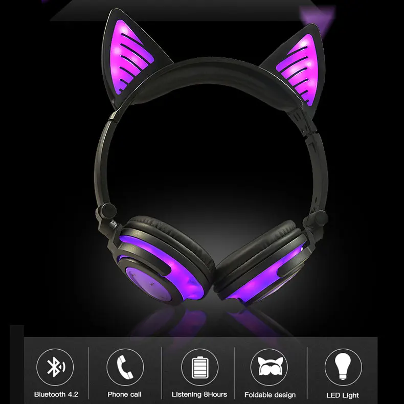 Product Name: Neue Drahtlose Bluetooth Kopfhörer Faltbare Blinkt Geburtstag Geschenk Katze Ohr Kinder Kopfhörer Gaming Headset Mit LED Licht